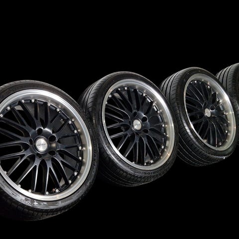 En däck har ett snitt men har inte gått i att det kan ta ur luft. Däcken är ojämnt utsliten.