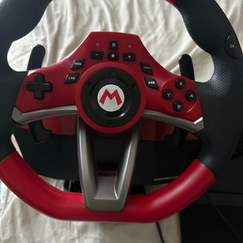 Nintendo Mario Kart Racing Wheel och Pedaler i rött och svart. Kompatibelt till Nintendo-spel, används för racing- och bilspel. Inkluderar ratt med knappar och pedaler för gas och broms. Kompatibel med både Switch 1 och Switch 2!!!