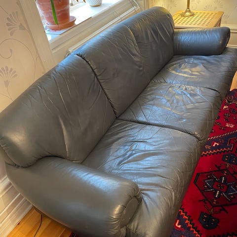 Bortskänkes soffgrupp i skinn inköpta på Finlandia möbler.