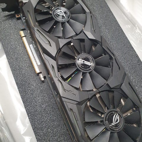ASUS ROG Strix gaming grafikkort med tre fläktar.