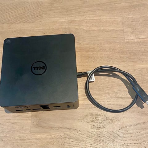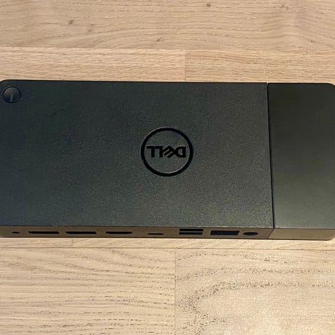 D-Link 3-in-1 USB-C Adapter med portar för HDMI, VGA och DisplayPort. Adapter för anslutning av olika skärmar och bildskärmsenheter via USB-C-port. Vit färg.