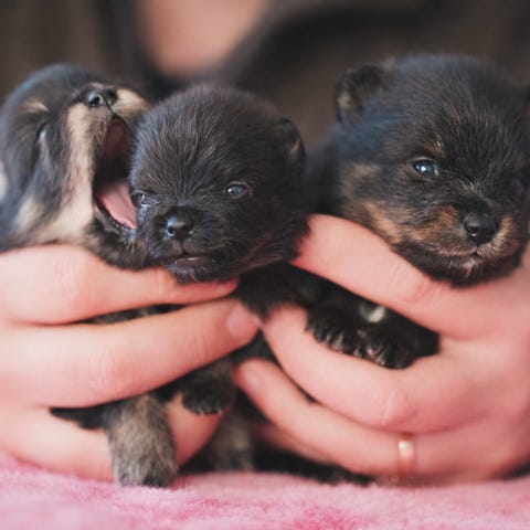 Nu har vi bara en tik kvar som söker lämpligt hem. Valparna är nu 3 veckor gamla.