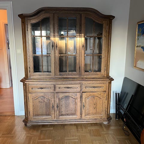 Säljer vårt vitrinskåp i massivt ek. Helt felfritt inga repor eller skador på det.