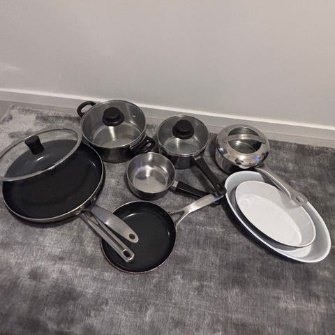 Set med kastruller och grytor från Hackman, Iittala och KöksKungen.