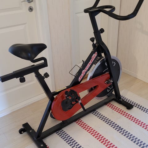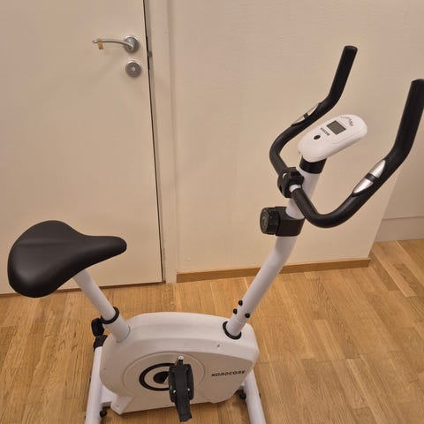 Livesport F-Bike motionscykel i svart färg med justerbart motstånd och digital display för tid, hastighet och kaloriförbrukning. Utrustad med ergonomiskt utformat styre och sadel för komfort under träning. Går att fälla ihop när den inte används för att spara plats. Använd 3 gånger, som ny! Hämtas på plats.
