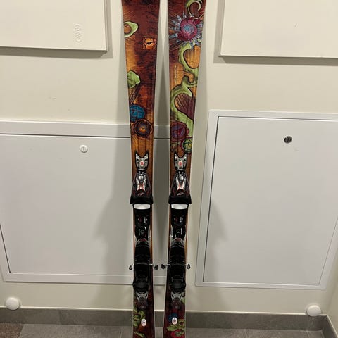 En lekfull skida utrustade med marker squire 11 bindningar som är centermonterade. Midjebredden på skidorna är 84 mm och de är 156 cm långa.