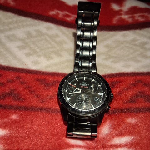 Casio digital klocka för man med svart och metallfärgad design. Klockorna har digital visning och olika armband i plast och metall.
