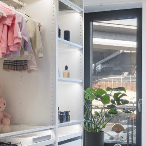 PAXStommar, garderober med inredning, samt ELFA skenor/konsoller/hyllplan.