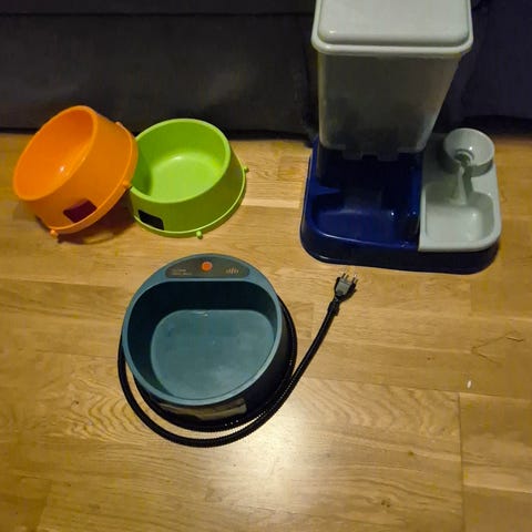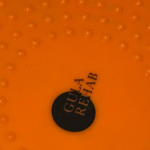 Träningsredskap för hund. På inrådan av fysioterapeut för hund användes dessa baljor, pallar och balanskudde för rolig träning med hund med artros