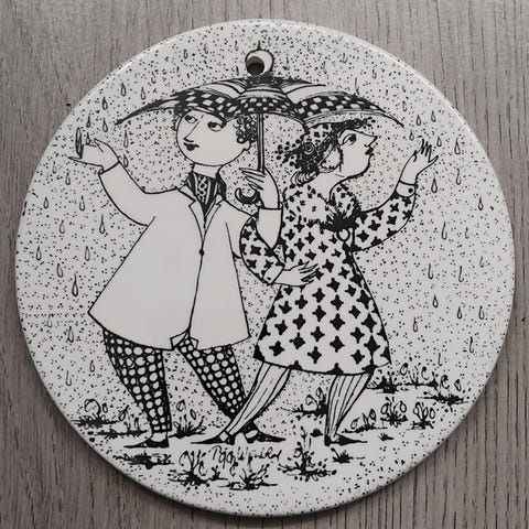 Säljer en vacker och dekorativ väggplakett/månadstallrik formgiven av den berömda danska konstnären Björn Wiinblad (1918-2006) för danska Nymölle Keramiske Fabrik.