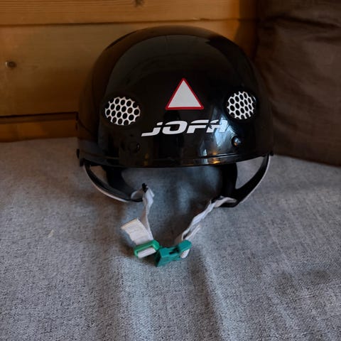 Jofa hjälm i svart färg med storlek 53,5-55,5 cm. Hjälmen är avsedd för skydd vid aktiviteter som kräver huvudskydd och har justerbar rem för säker passform.