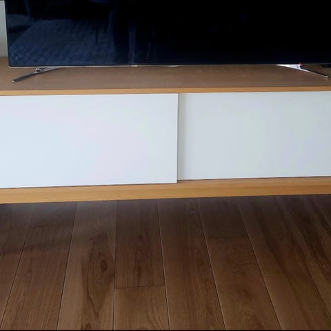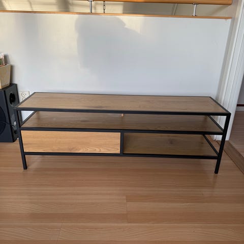 Synligt använd mediabänk ca 10 år gammal. Fläckarna går att slipa bort om man vill