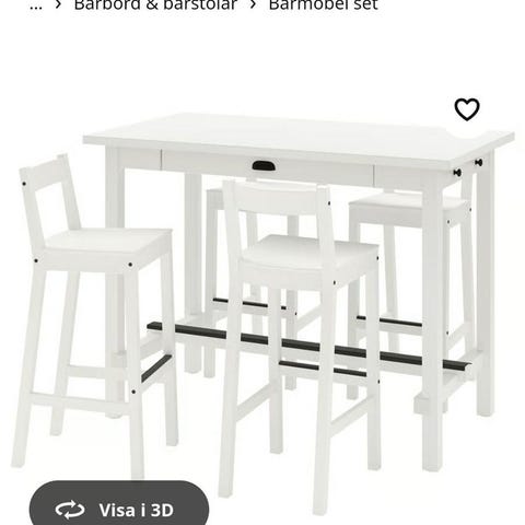 Ljust stavskiva i använt skick. Åtta stolar varav fyra är lite glansigare och fyra är matta i färgen.