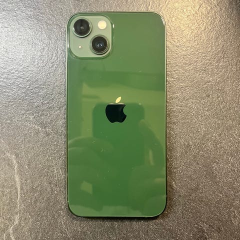 Apple iPhone 13 med 128 GB lagringsutrymme i mörkblå färg.