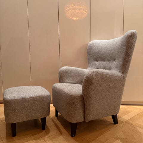 Fåtölj med fotpall