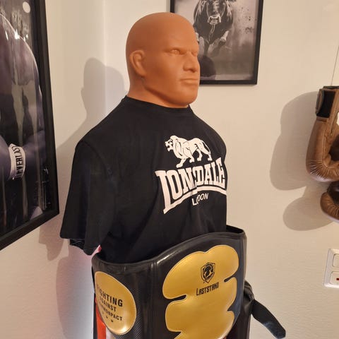 Bild 1: Xtreme boxningsdocka i röd färg med grå stötdämpande bas, avsedd för träning och kampsport.