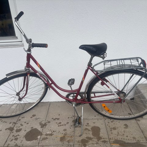 damcykel 28tum DBS Nostalgi Klassisk 3-växlad med fotbroms och matchande röda stänkskärmar/kedjeskydd mycket fint skick