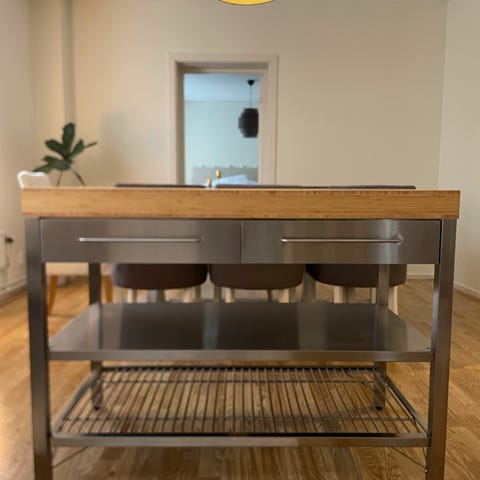Ikea köksö vit 6 lådor med laminatskiva.