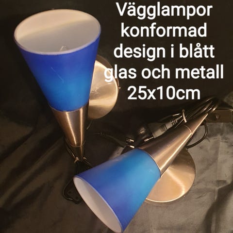 2st Vägglampor konformad design i blått glas och metall 25x10cm