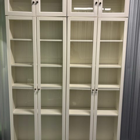 Säljer en IKEA Billy / Oxberg bokhylla med vitrindörr i vit/glas.
