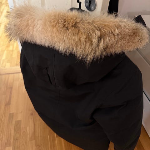 Grön vinterjacka från Alpha Industries. Många snygga detaljer, välsydd i tålig nylon. Praktisk och varmfodrad jacka med luva som är delbar samt med finare päls som jag själv bekostat (jackan kommer med annan päls). Ärmficka, fyra fickor fram samt innerficka. Dubbla lager framtill vid öppningen för att vara extra tålig mot kyla och blåst framifrån.