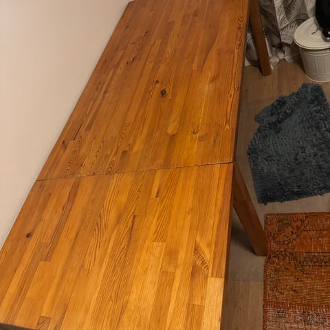 Bordet är begagnat och har synliga bruksspår/fläckar och behöver kanske lite omvårdnad, såsom slipning/ytbehandling, se bilder.