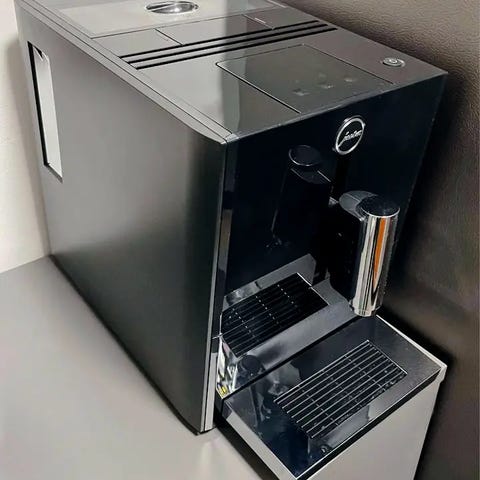 Maskinen gör kaffe, espresso och cappucino. Den har alltid blivit servat. Mjölkpumpen till capuccino är inte i bra skick och man behöver lägga till flera sekunder för att få bra skum.