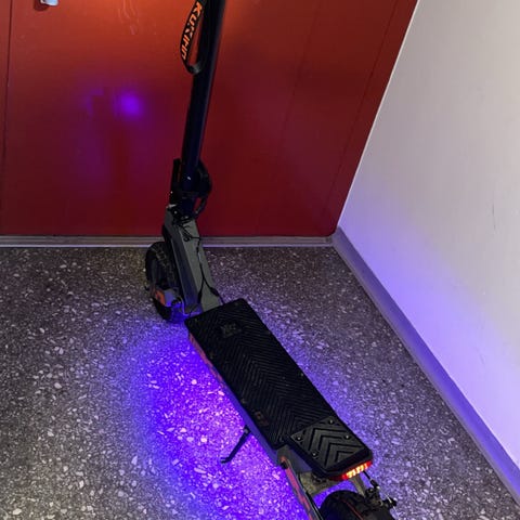 Kukirin g2 PRO el-scooter i svart med orange detaljer. Utrustad med display som visar hastighet och batterinivå. Scooter är avsedd för vuxna. Denna elkick kan köra upp till 45 kmh men har även kommit upp till 50 kmh. Den är utrustad med bra och mjuk dämpning Elkicken har oranga lampor runt om som även används för blinkers. Har dock problem med fram lampan och tutan dessa 2 sitter ihop i en kabel det är därför de båda är sönder men vet vad problemet är. Har även garanti på den som håller fram till sommaren. Till köpet kommer en fram stänkskärm men ej till där bak men det kan köpas för billigt på deras hemsida. Saknas en bult till bak hjulet men finns nog någonstans som man kan köpa de. Finns lite små repor på visa ställen. Men denna elkicken rullar väldigt fint så inga problem med motorn. Passar för stads- och fritidsbruk.