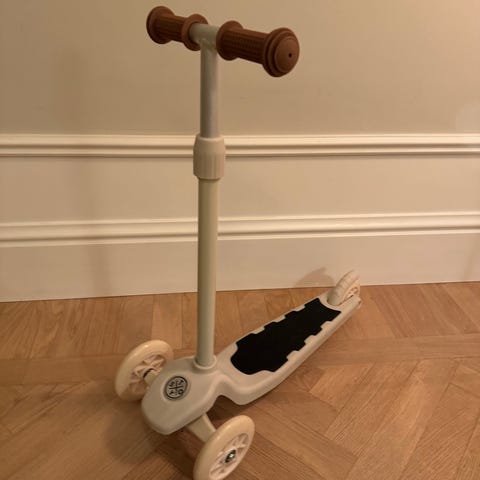 Stoy Vintage Min Första Sparkcykel i beige färg. En sparkcykel designad för barn med tre hjul för stabilitet och trähandtag för bättre grepp.om det önskas så kan den skickas eller hämtas på plats.finns i Tullinge,väldigt nära pendeltåg stationen