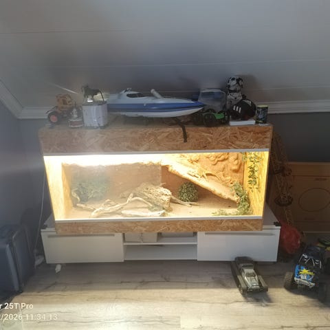 Terrariet passar bäst för någon med terrarievana och är inte ett nybörjarterrarium. Säljs helst som paket. Hämtas på plats och finns i Råneå, terrariet är stort, tungt och otympligt så bärhjälp krävs.