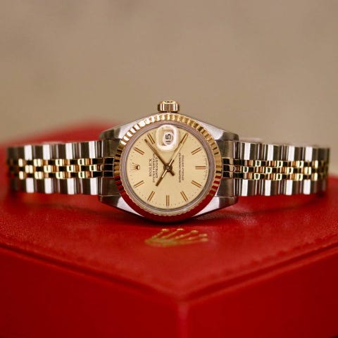 Säljer nu 1st Original Rolex Lady-Datejust 26 i guld och stål med champagne tavla och diamanter.