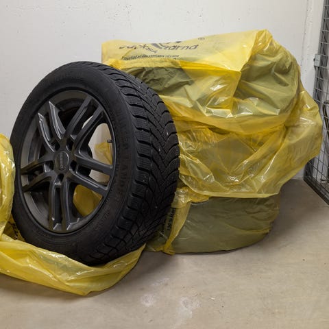 Däck och fälgar är i bra skick och ca 8mm däckdjup kvar. High load däck anpassade för elbil. Använda 3 säsonger ca 500 mil. Har suttit på en MG4 men passar säkert fler bilar.