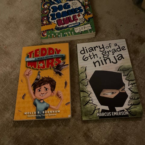 Böcker - Diary of a wimpy kid and Dog man, på engelska