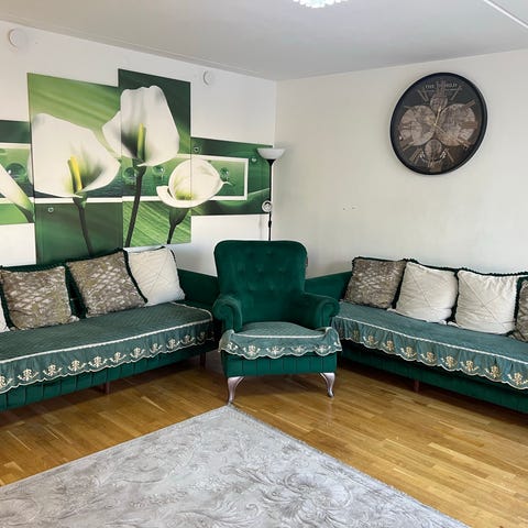 Säljer ett stilrent och bekvämt möbelset i sammet som består av: 3-sits bäddsoffa: Bredd: 220 cm, Höjd: 80 cm, Djup: 96 cm. 2-sits bäddsoffa: Bredd: 160 cm, Höjd: 80 cm, Djup: 93 cm. Fåtölj: Bredd: 80 cm, Höjd: 100 cm, Djup: 70 cm. Väldigt fint skick, knappt använda och mycket välskötta. Sofforna är bäddsoffor – perfekta för övernattande gäster! Ben i guldfärgad metall, vilket ger ett elegant intryck. Rök och djurfritt hem.