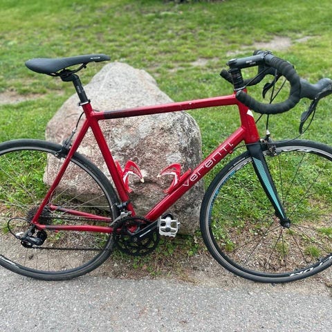 Det är en Trek 1.5 road bike från 2010 med Shimano tiagra drev och Shimano sora shifters, 10 speed. Ramen är i aluminium med kolfibergaffel. Det är Bontrager hjul med nybytta lager och en selle Italia sadel. Storlek L (60) jag är 192 och sitter bekvämt på den.