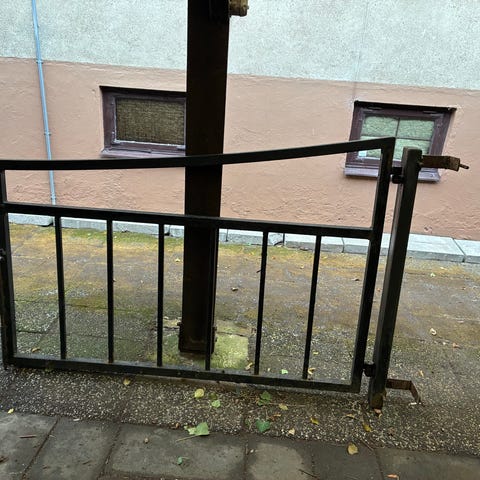 Järngrind med nyckel.