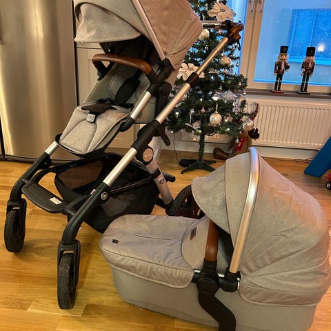Vi säljer nu vår älskade första barnvagn. Den har tjänat oss väl men är i absolut toppskick och har många år kvar. Köpt ny av oss så vi är de enda ägarna. Otroligt stabil men ändå lättkörd, och tar sig fram i alla väglag. Enstaka skav finns på chassit efter i- och urlastning ur bil men både handtag, byglar och övriga detaljer är helt fria från skav och märken. Tveka inte att höra av dig om du vill ha mer information eller fler bilder.