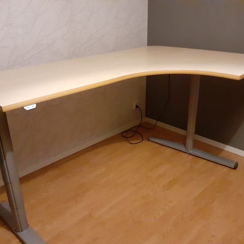 Säljer ett höj- och sänkbart hörnskrivbord från Kinnarps (Made in Sweden). Perfekt för hemmakontor eller kontor tack vare rejäl kvalitet och stor arbetsyta.