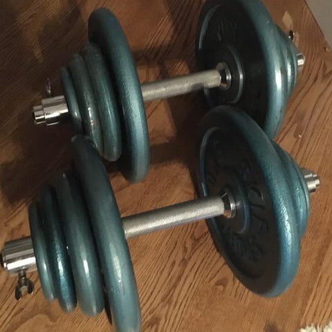 Säljer två hantlar med justerbar vikt. 4 stycken skivor på 1,25kh och 4 stycken skivor på 2,5kg. Är i bra skick. Säljer pga har växt ur dem och börjat gå till gym.