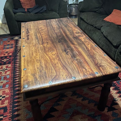 Soffbord i rustik stil. Har lite skav men stabilt och fint bord. Tror att det kommer från Indiska.