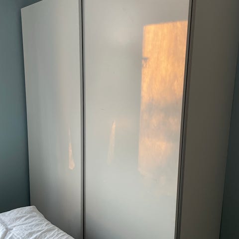 Stor pax garderob 2 st 100*58*236 vit med hyllplan,klädstång,meshcackar utdragna