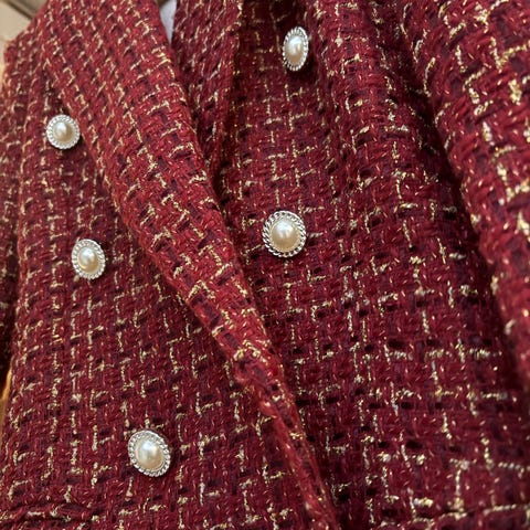 Jag säljer en röd kofta för dam i storlek XL/42