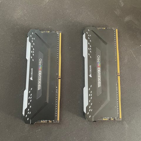Corsair Vengeance Pro RAM-minne i svart färg som även har RGB belysning som man själv kan välja färg på. Stickorna är sparsamt använda och fungerar felfritt!