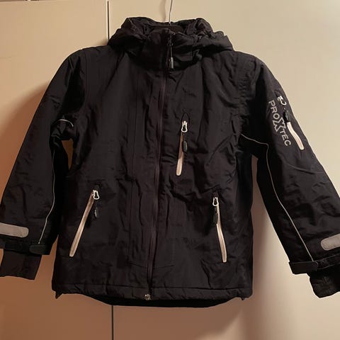 Vattenresistent Skidjacka st 34 i väldigt gott skick. Ficka för skidkort, innerficka och knappar/spänne insida runt höfter. Passar barn eller nätt vuxen. Använt ihop med rosa byxor till barn storlek 164.