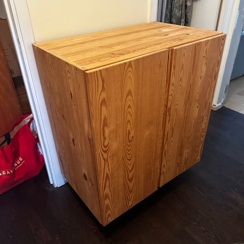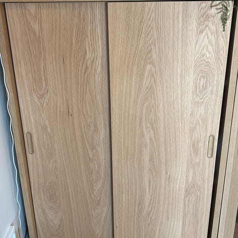 Billy Oxberg skåp i ekmönster säljes pga att vi mätt fel och det får ej plats i hallen. Mycket fin skåp. Två hyllplan. Nypris 1299:-. Säljes utan knoppar.