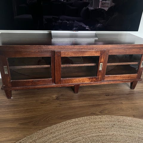 TV-bänk i trä med förvaring