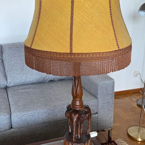 Säljer en mycket karaktärsfull bordslampa i äkta läder (märkt med "Echt Leder"). Lampan har en fantastisk rustik design med handsydda detaljer och dekorativa fransar som ger ett genuint vintage-intryck.