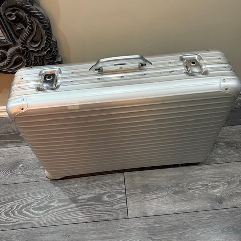 Denna stora, fina RIMOWA original säljs i mycket gott skick. Alla funktioner; hjul, lås etc. fungerar som nya. Insidan/fodret är som nytt, väldigt lite använd RIMOWA!