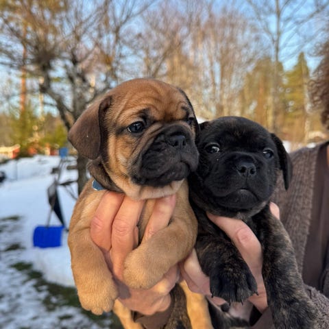 Nu är det bara superfina docksöta Madonna kvar från en valpkull på 8 st. Född: 6 september 2025. Mamma Peggy (bild 5) födde sina åttlingar på löpande band, utan problem. Madonna är av den lite lugnare försiktigare sorten men är väldigt busig mellan varven, precis som en valp ska vara. Extremt go och kärleksfull, mycket pussig & kramig. Om man lyfter upp henne i famnen så håller hon om en med tassarna runt halsen och kramas. Enorm personlighet.