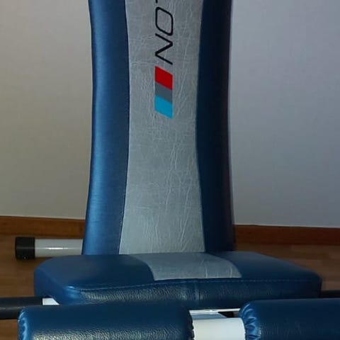 Träningsbänk med utrustning för ben och ställning för skivstång. Bänken är justerbar för olika träningspositioner och är avsedd för styrketräning i hemmiljö. Inköpt från Biltema under hösten, säljes då jag själv byter till en annan bänk.
